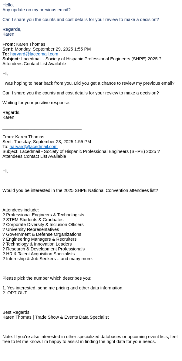 Lacedmail - Society of Hispanic Professional Engineers (SHPE) 2025 ? Attendees Contact List Available