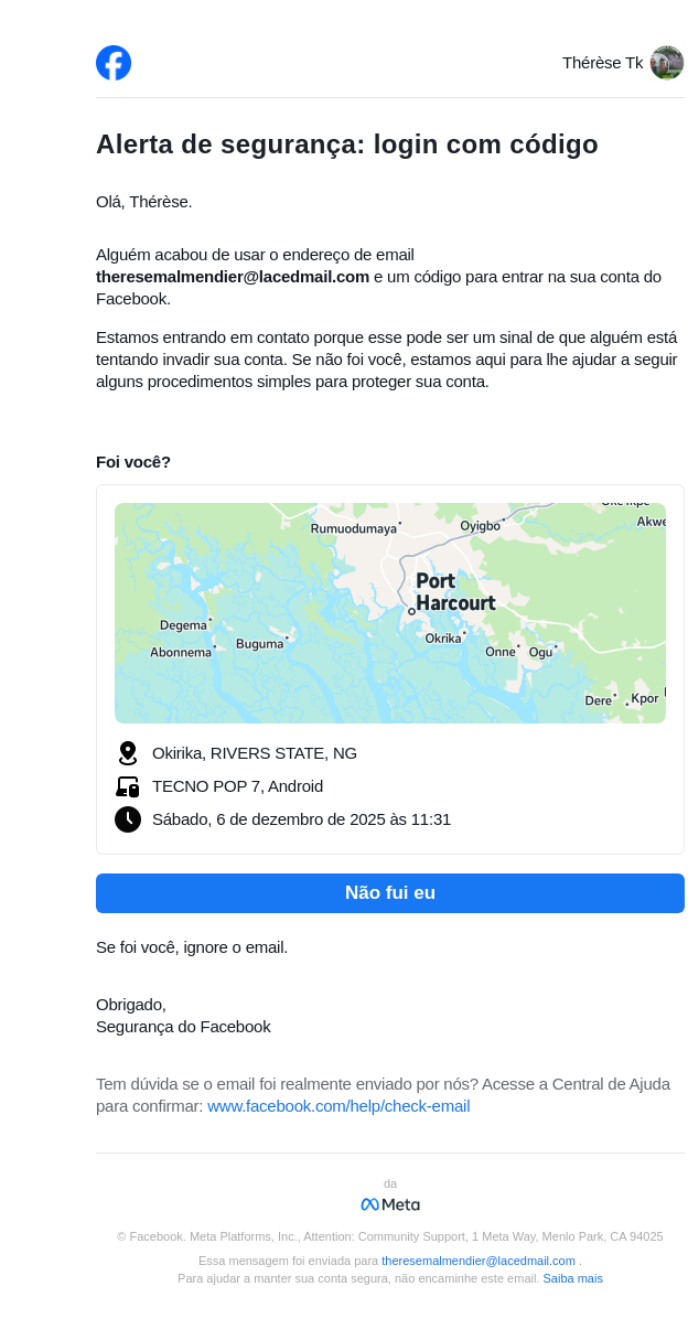 To: theresemalmendier@lacedmail.com From: security@facebookmail.com Received: 2025-12-06 11:31:50.760762
