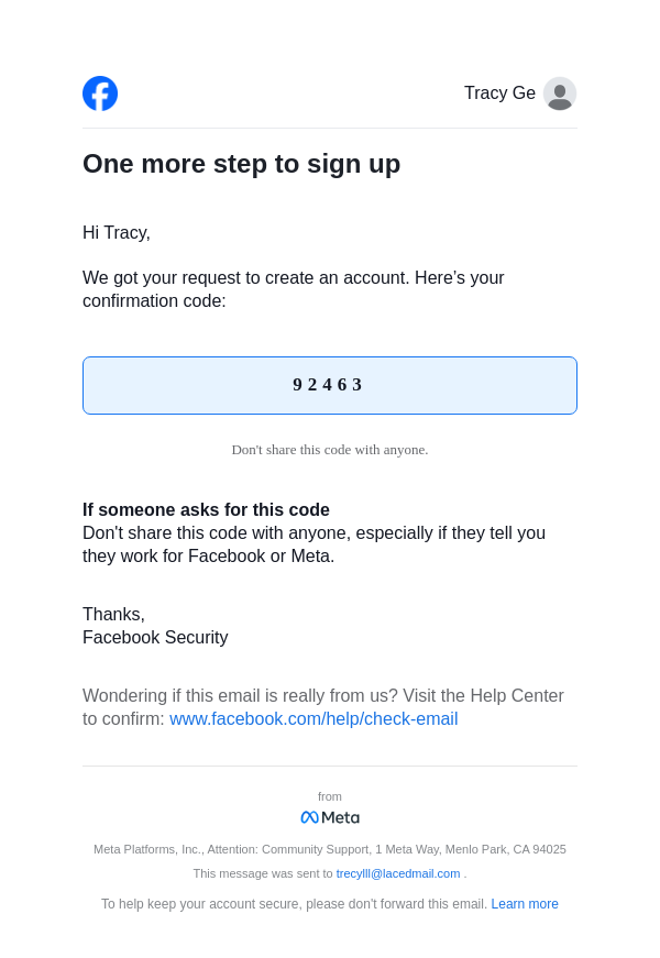 From: registration@facebookmail.com