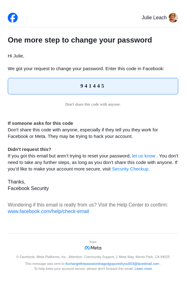 To: ifuchangethepasswordnagodgopunishyou003@lacedmail.com From: security@facebookmail.com Received: 2026-01-03 12:14:21.093132
