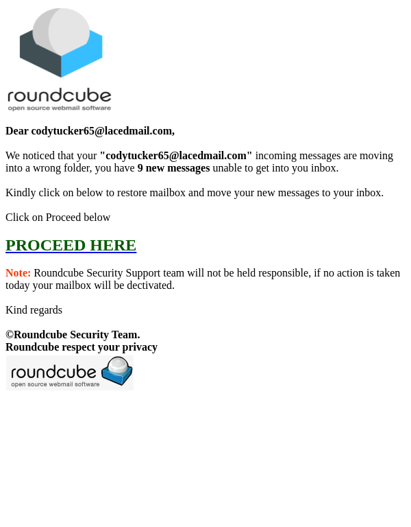 E-MAILS BLOCKAGE AND SUSPENSION FOR codytucker65@lacedmail.com