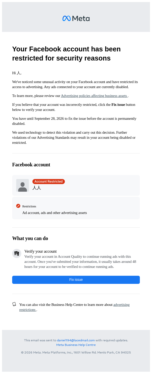 Your access to advertising has been restricted