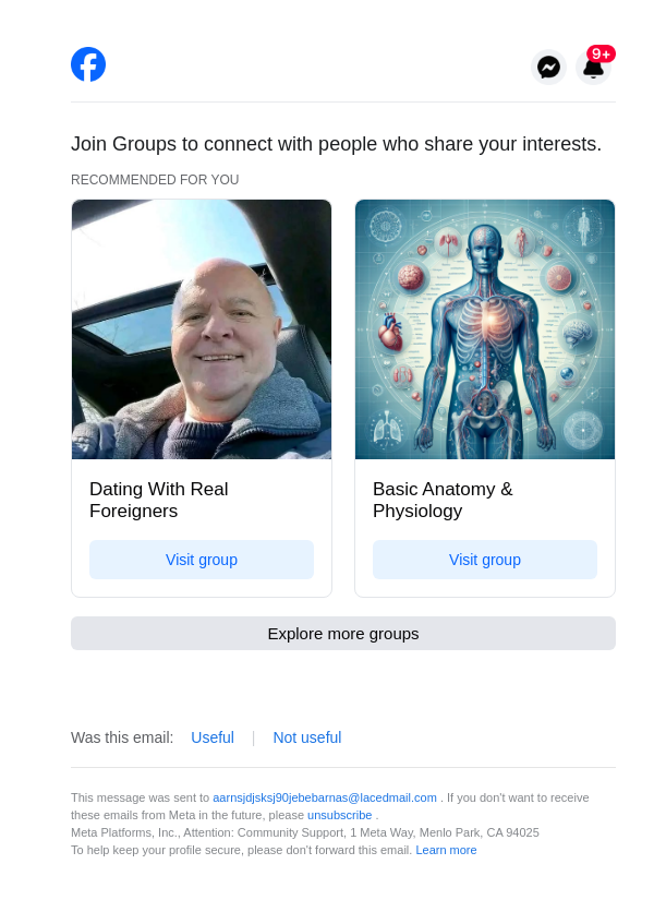 To: aarnsjdjsksj90jebebarnas@lacedmail.com From: groupupdates@facebookmail.com Received: 2026-04-01 09:06:18.713225