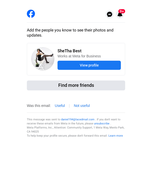 To: daniel194@lacedmail.com From: friendsuggestion@facebookmail.com Received: 2026-04-02 12:32:05.523153