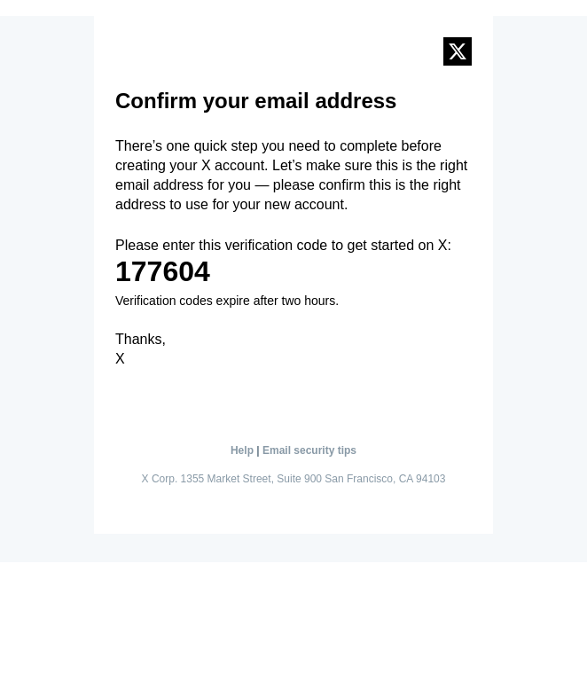177604 is your X verification code