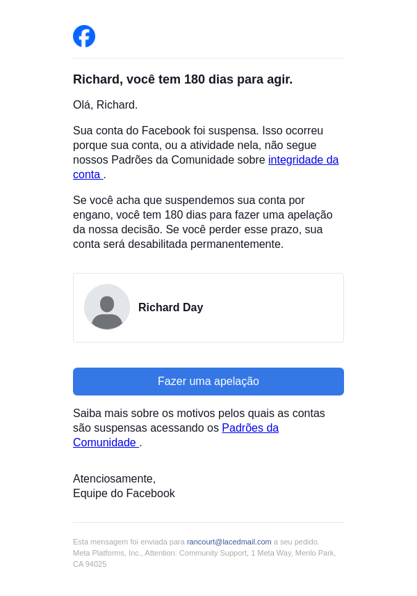 Ação necessária na sua conta do Facebook