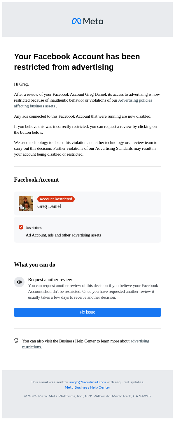 To: uniqlo@lacedmail.com From: advertise-noreply@support.facebook.com Received: 2025-11-23 10:24:29.926368