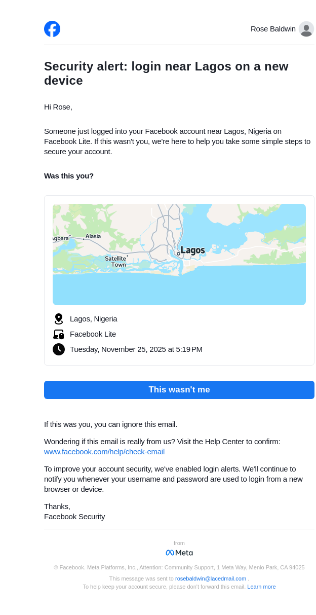 Did you just log in near Lagos on a new device?