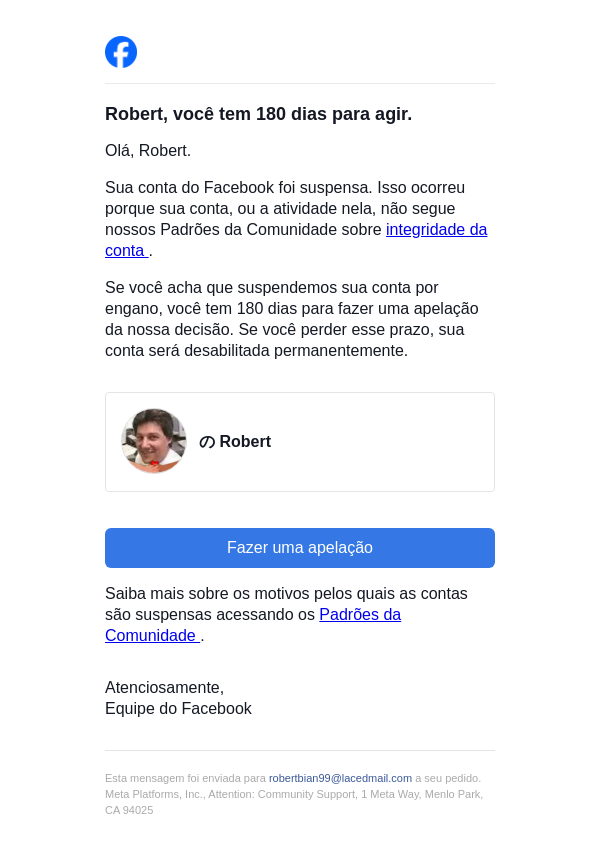 Ação necessária na sua conta do Facebook