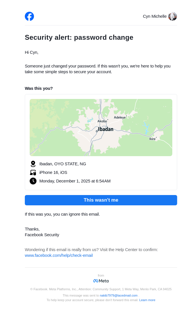 From: security@facebookmail.com
