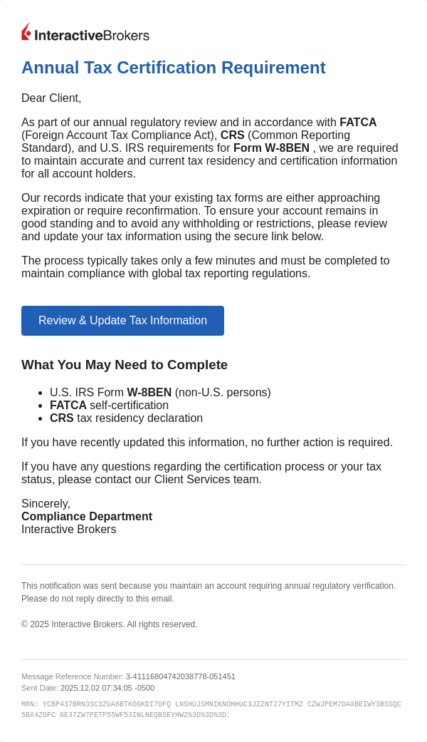 Annual Tax Certification Requirement