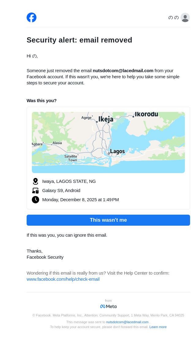 From: security@facebookmail.com