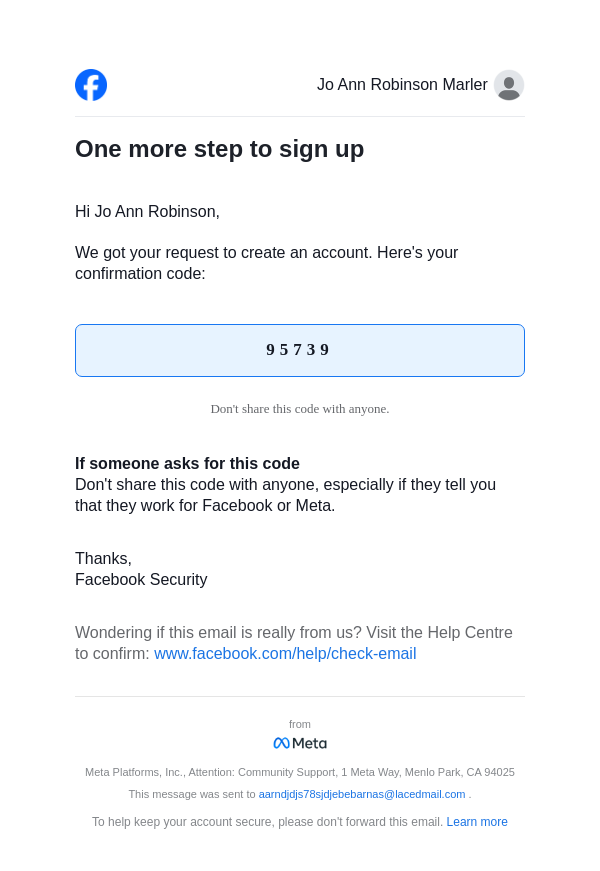 To: aarndjdjs78sjdjebebarnas@lacedmail.com From: registration@facebookmail.com Received: 2025-12-18 05:45:25.498042