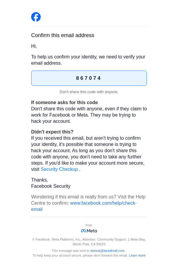 867074 is your Facebook security code