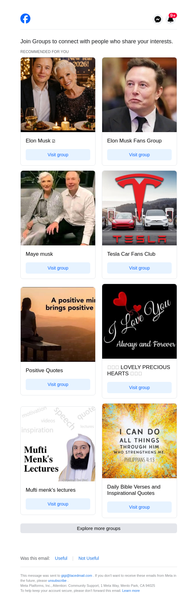 Elon Musk ☑️ and 7 others are new Group suggestions for you