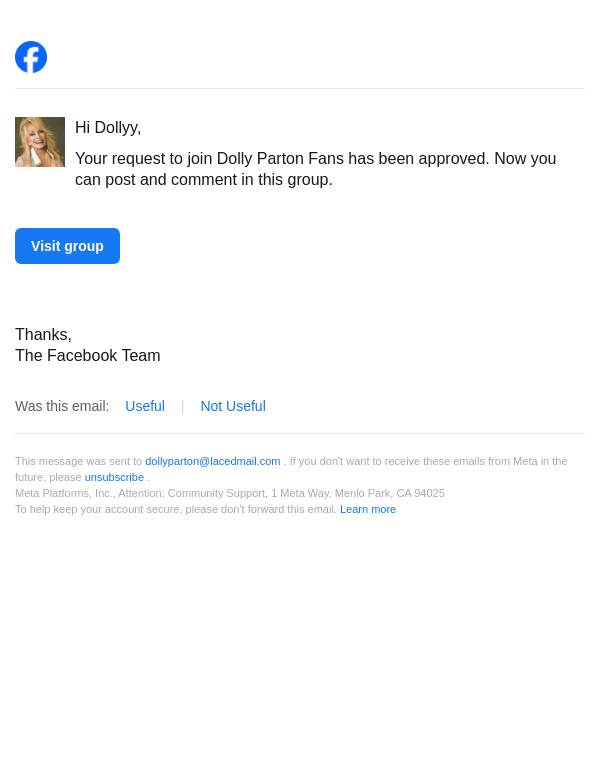 To: dollyparton@lacedmail.com From: groupupdates@facebookmail.com Received: 2026-01-27 08:55:47.557991