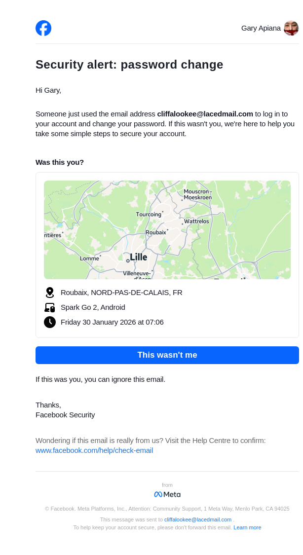 From: security@facebookmail.com