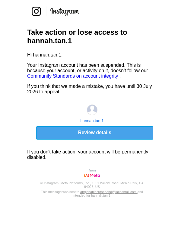 To: angienapiesutherland@lacedmail.com From: no-reply@mail.instagram.com Received: 2026-01-31 16:04:10.407432