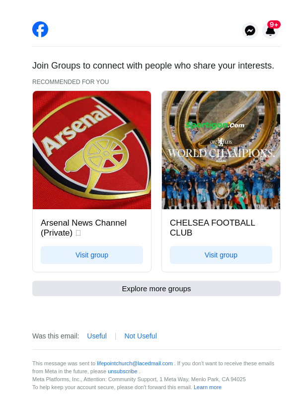 To: lifepointchurch@lacedmail.com From: groupupdates@facebookmail.com Received: 2026-02-01 22:05:52.256806