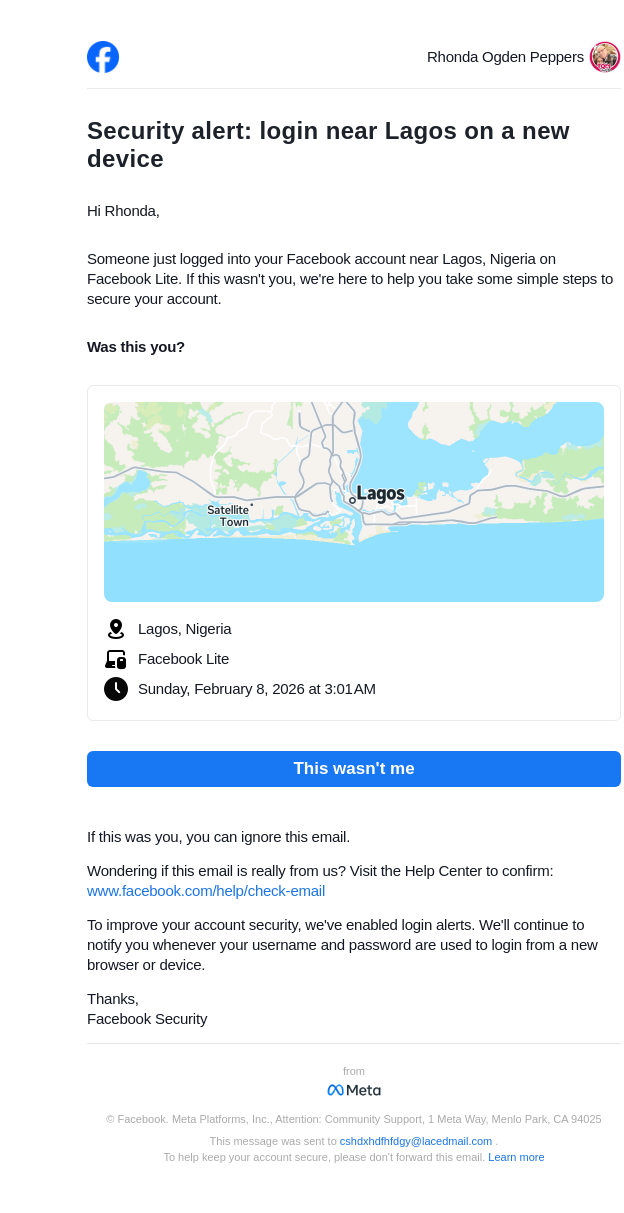 From: security@facebookmail.com