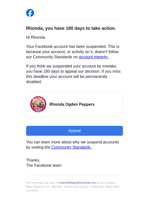 Action needed on your Facebook account