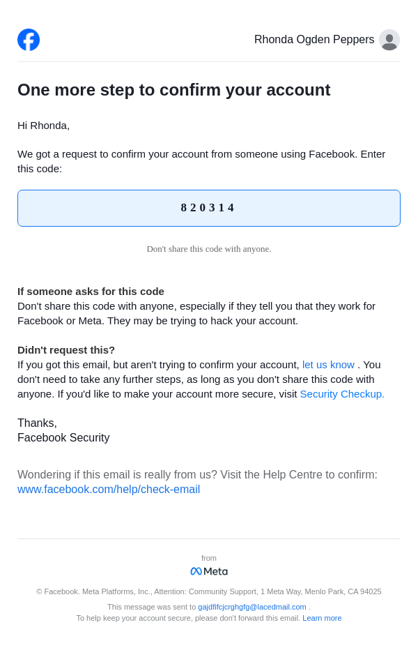 To: gajdfifcjcrghgfg@lacedmail.com From: security@facebookmail.com Received: 2026-02-11 22:07:46.408540