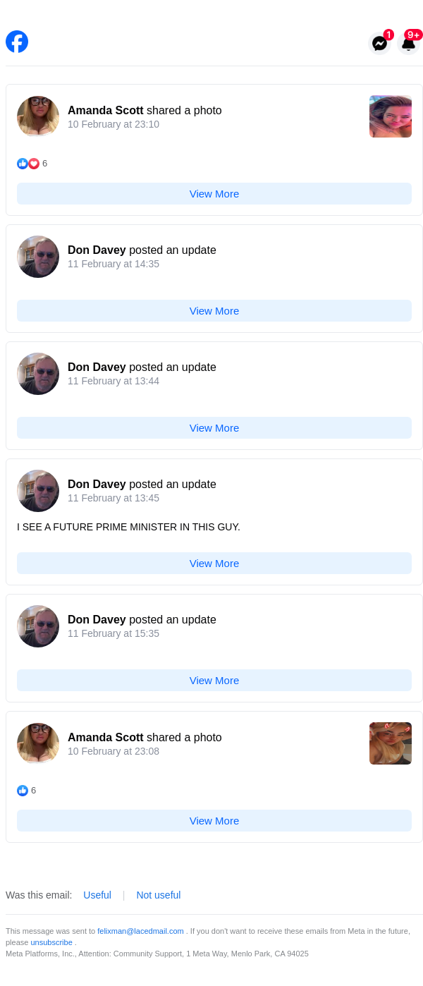 Top 6 posts on Facebook: posts from Amanda Scott and Don Davey
