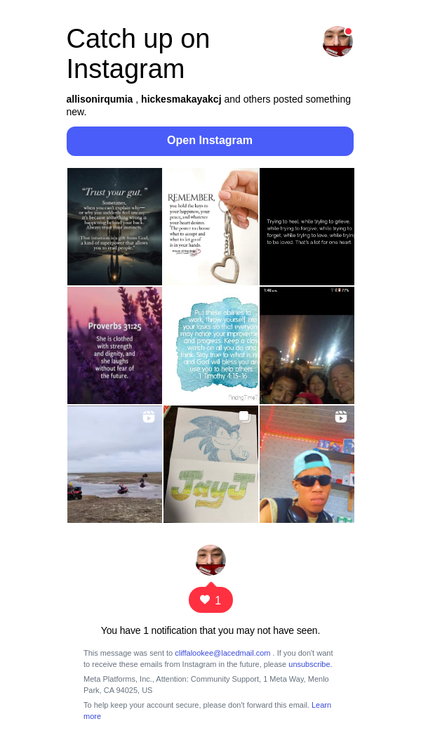 To: cliffalookee@lacedmail.com From: posts-recaps@mail.instagram.com Received: 2026-02-16 16:32:57.903463