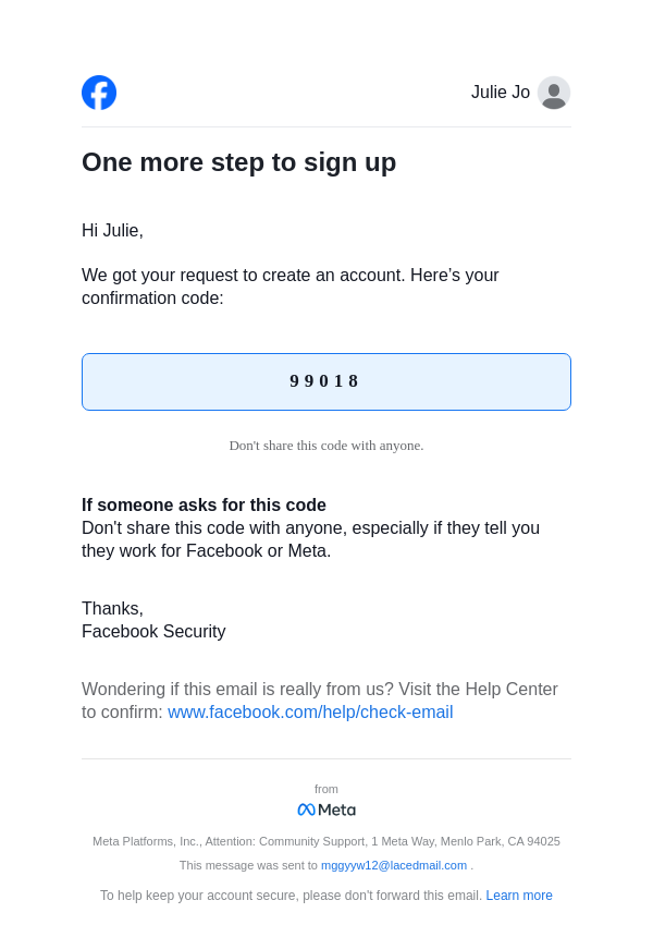 From: registration@facebookmail.com