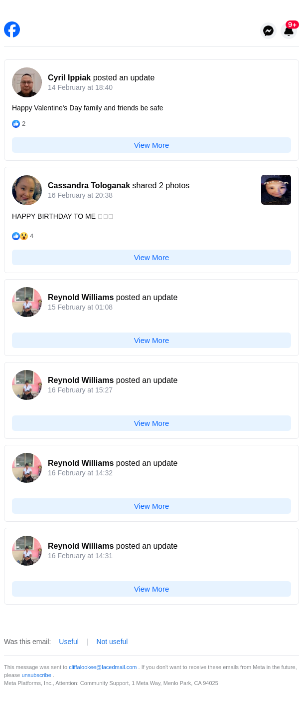 To: cliffalookee@lacedmail.com From: notification@facebookmail.com Received: 2026-02-17 21:21:11.369589