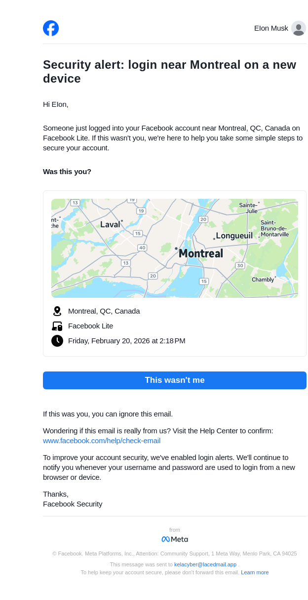 From: security@facebookmail.com