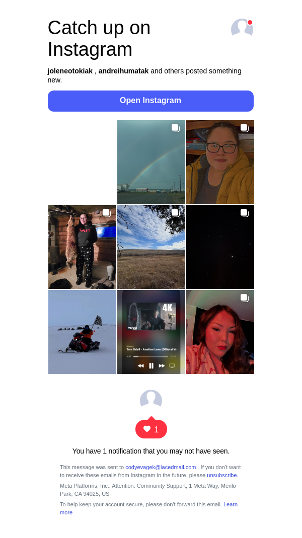 To: codyevagek@lacedmail.com From: posts-recaps@mail.instagram.com Received: 2026-02-23 14:58:24.621348