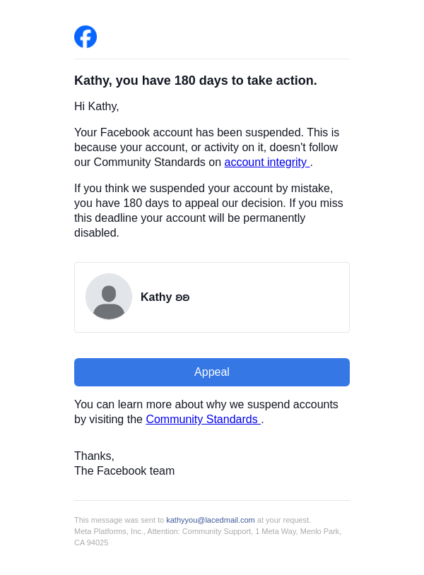 Action needed on your Facebook account