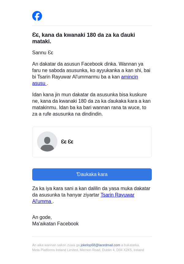Ana buƙatar ɗaukar mataki a asusun Facebook ɗinka
