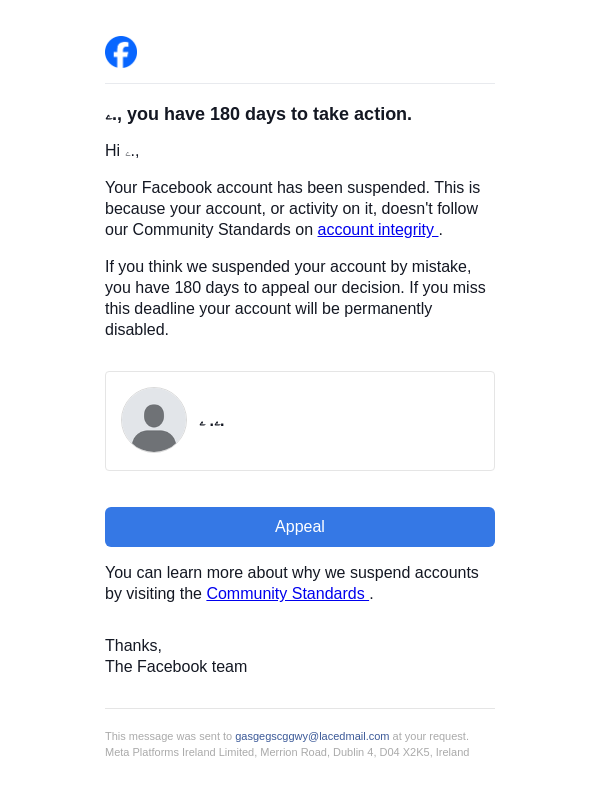 Action needed on your Facebook account