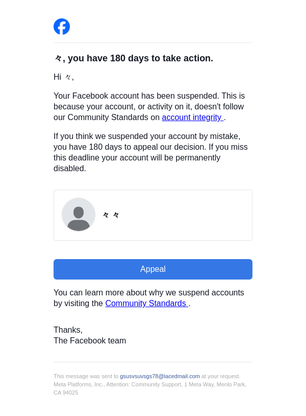 Action needed on your Facebook account