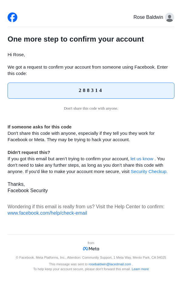 From: security@facebookmail.com