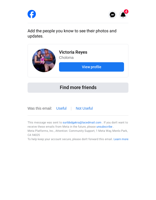 To: suribbdgakra@lacedmail.com From: friendsuggestion@facebookmail.com Received: 2026-03-01 23:12:35.860247