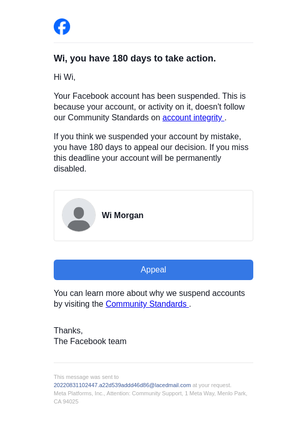 To: 20220831102447.a22d539addd46d86@lacedmail.com From: security@facebookmail.com Received: 2026-03-04 02:09:27.973570