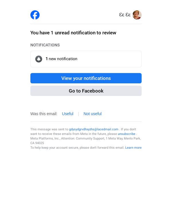 To: gdysydgrvdhxyzhs@lacedmail.com From: reminders@facebookmail.com Received: 2026-03-07 10:51:17.764186