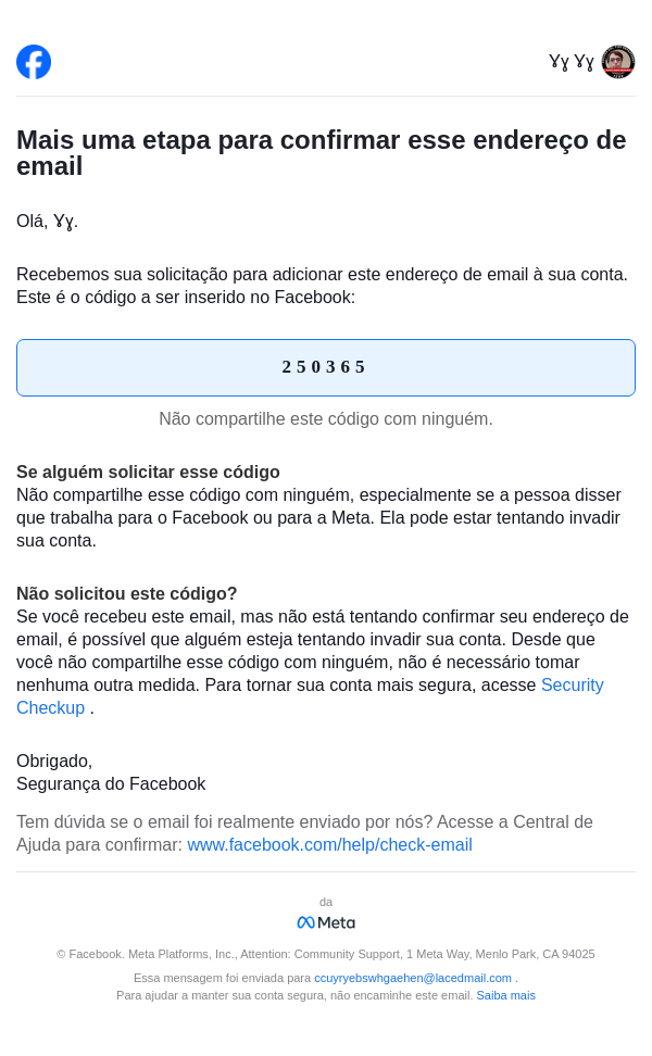 To: ccuyryebswhgaehen@lacedmail.com From: security@facebookmail.com Received: 2026-03-07 22:00:47.451527
