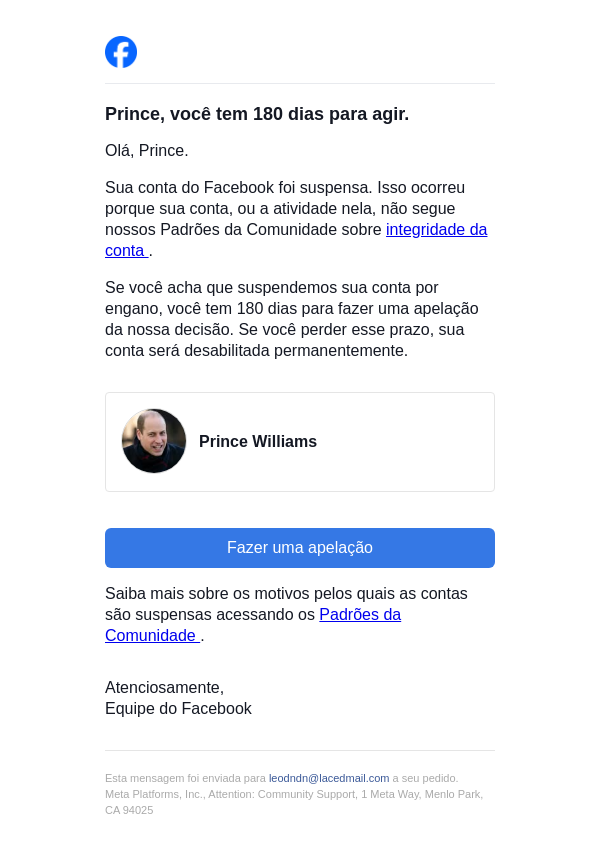 Ação necessária na sua conta do Facebook