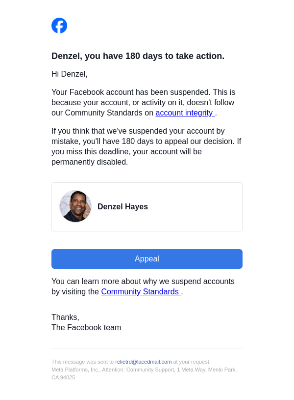Action needed on your Facebook account