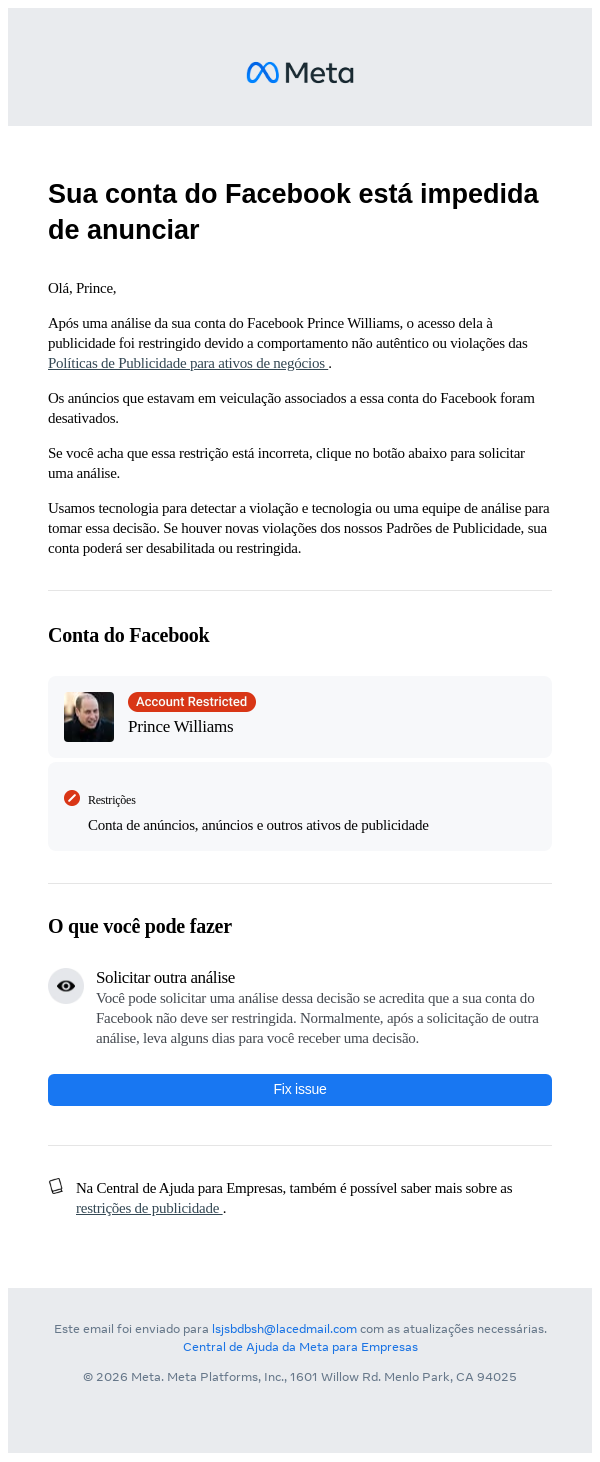 Sua conta do Facebook está impedida de anunciar