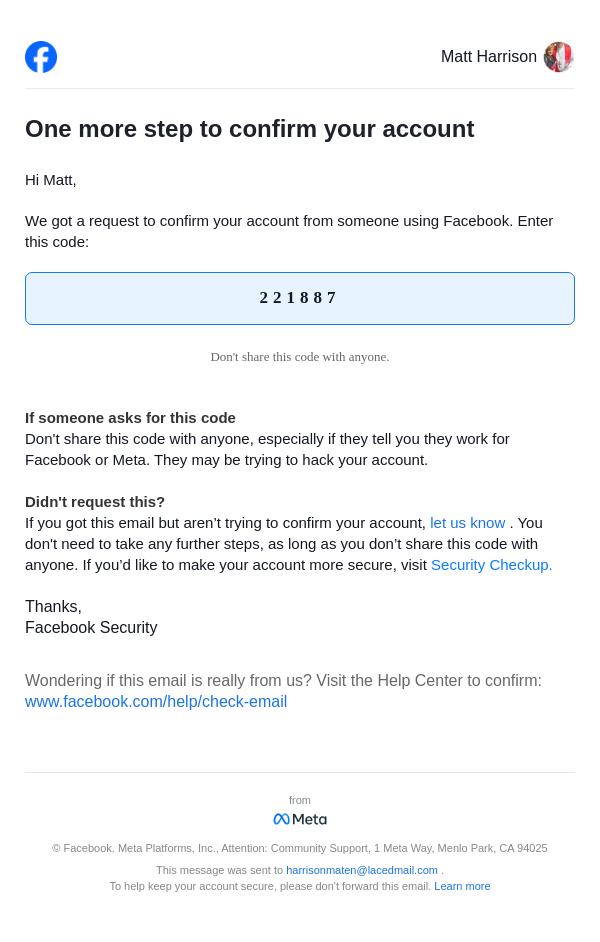 From: security@facebookmail.com