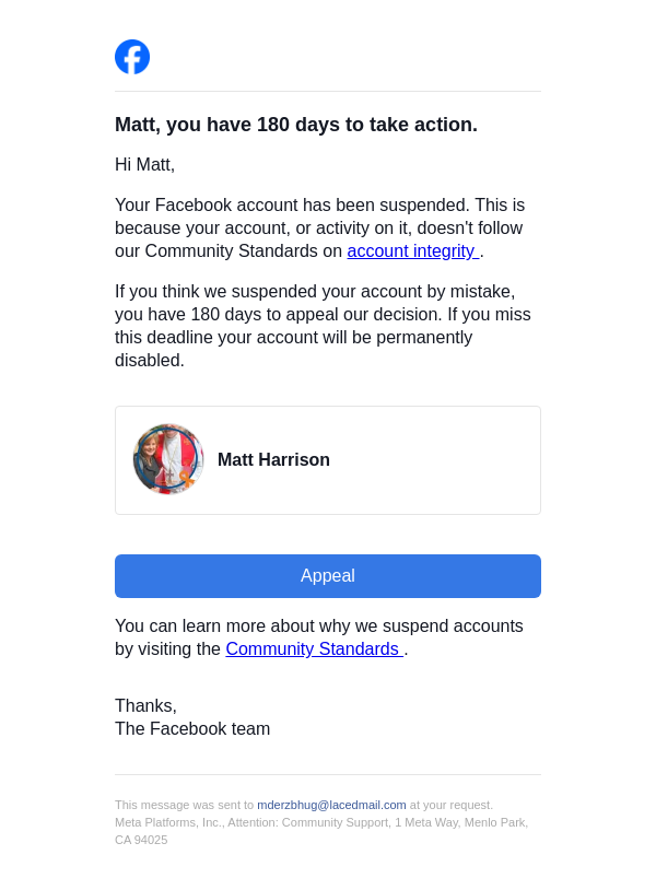 Action needed on your Facebook account