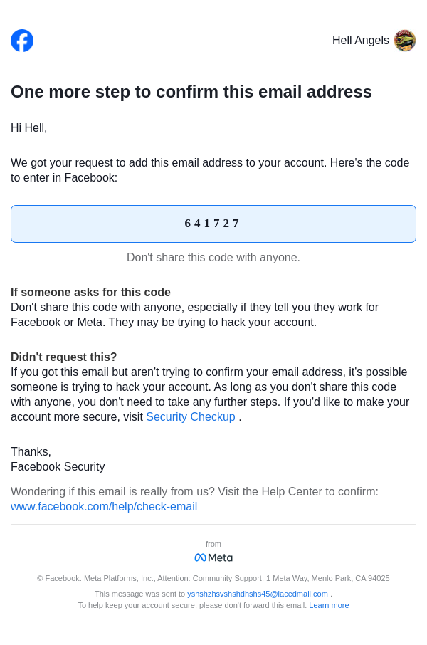 To: yshshzhsvshshdhshs45@lacedmail.com From: security@facebookmail.com Received: 2026-03-11 15:28:11.393877