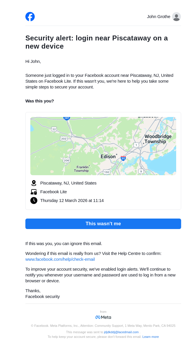 Did you just log in near Piscataway on a new device?