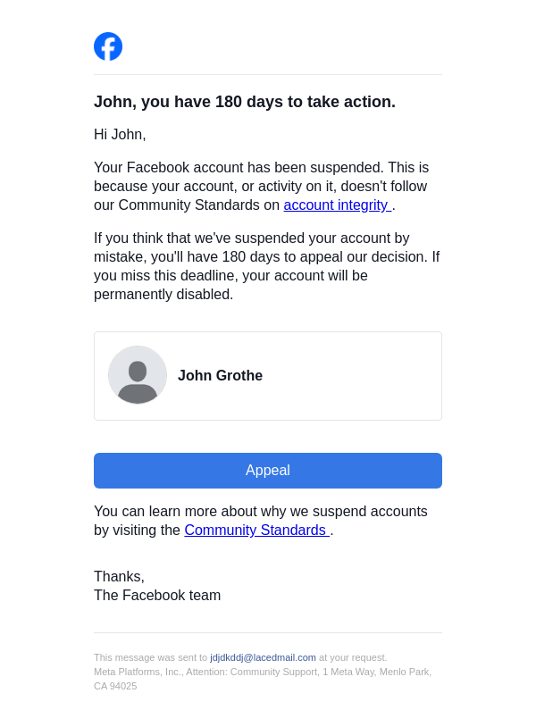 Action needed on your Facebook account