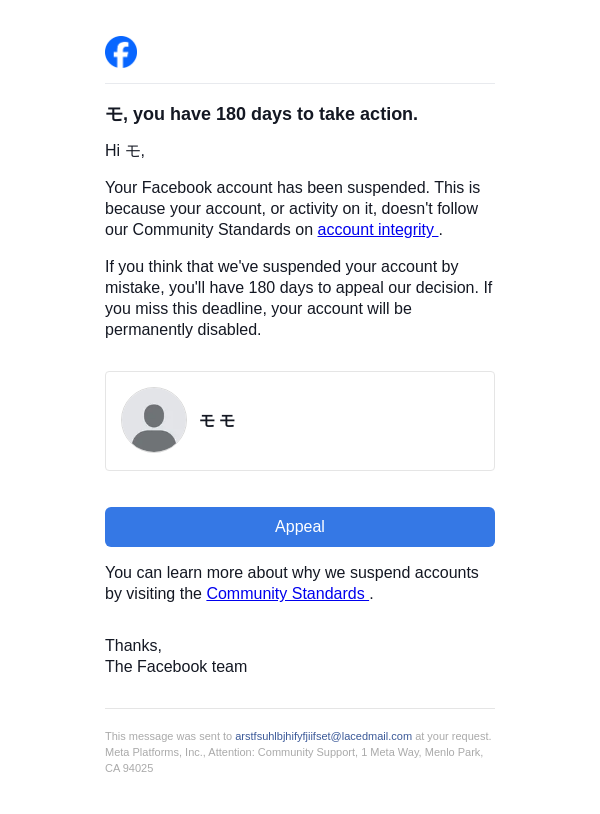 To: arstfsuhlbjhifyfjiifset@lacedmail.com From: security@facebookmail.com Received: 2026-03-12 17:54:14.959073
